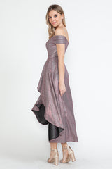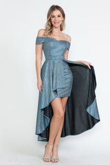 Dazzle in this satin LA Merchandise LAF5290 A-line gown, ideal for cocktail parties, homecoming, and semi-formal events. Featuring embellished spaghetti straps, off-the-shoulder sleeves, and a sweetheart neckline, it boasts a soft cup-padded bodice, mini layered skirt, and thigh-high slit. The glitter finish and open back with zipper closure complete this glamorous look.