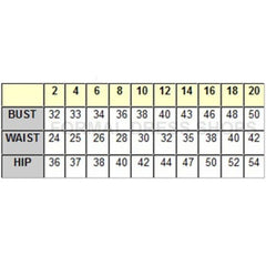 - Size: 2, 4, 6, 8, 10, 12, 14, 16, 18, 20