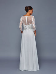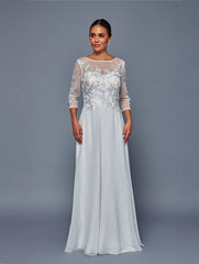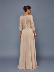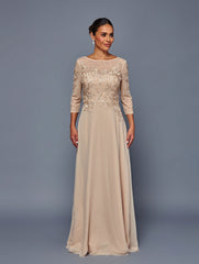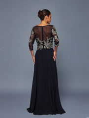 Wholesale Mother of the Bride Long Chiffon Dress with Illusion Lace Bodice & 3/4 Sleeves by LADK319