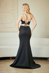 Wholesale One-Shoulder Mermaid Evening Gown with Flower Detail Lace-Up Back by LAA2080