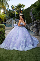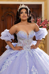 Turn heads in this breathtaking LA Merchandise LA290 quinceañera ball gown, designed for a truly unforgettable princess moment. This elegant formal dress features a strapless sweetheart neckline and a sheer corset bodice, beautifully embellished with intricate iridescent beading and embroidered appliqués, creating a luxurious, high-end finish. The fitted corset transitions into a full-volume tulle ball gown skirt, layered for dramatic fullness and detailed with ornate embroidery and subtle glitter accents that shimmer under the light. The gown enhances its fairy-tale aesthetic, making it a top choice for quinceañeras, sweet 16 celebrations, and grand formal occasions. An adjustable lace-up corset back provides a secure, flattering fit, offering both comfort and structure. This gown is crafted to photograph beautifully and make a statement at any special event. (Please note: A slight natural fallout of glitter may occur during the first couple of try-ons.)