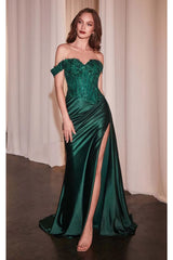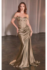 Wholesale Off‑Shoulder Beaded Corset Satin Evening Gown By LAR803