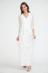 Details: Ruched, 3/4 Sleeve sheer jacket, Two Piece dress, Soft cup padded insert, Knee Side Slit, Lace embellished, V-Open back with zipper closure.