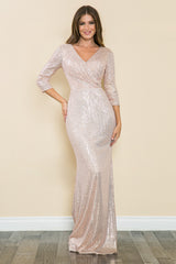 LA Merchandise LAF8186 Sequin 3/4 Sleeve Evening Gown V-neck Flattering Fit for Mother Of The Bride Dress