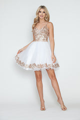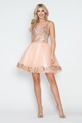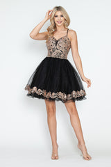 LA Merchandise LAF8238 Sequin Bodice Tulle Short Party Dress V-Neck Spaghetti Straps HOCO Dress