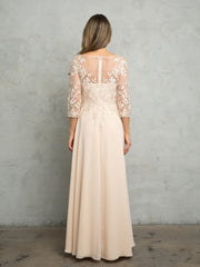 LA Merchandise LAV5258 Lace 3/4 Sleeve A-Line Evening Gown with Chiffon Overlay Mother of the Bride Dress