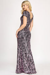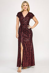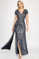 Wholesale Sequin Velvet Wave Pattern Evening Gown with Side Slit By LAF5331