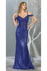 This modest prom & evening dress features, detailed straps and off shoulder detailed straps, full length mermaid style with sweetheart neckline & embellish embroideries & rhinestones on bodice and sequins on skirt.