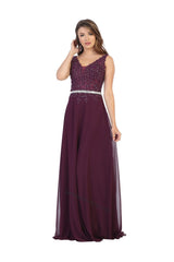 This elegant evening & formal dress features, embellish lace appliques and rhinestones embroideries at the bodice with long chiffon skirt.