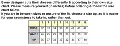 - Sizes: 2, 4, 6, 8, 10, 12, 14, 16.