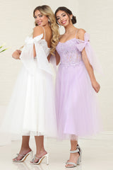 LA Merchandise LA2089 Sheer Bodice Tea Length Semi Formal Dress