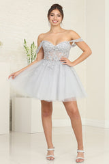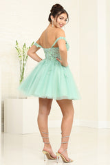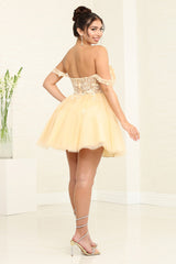 Unlock the magic of style with LA Merchandise LA2091 Dress, a radiant gem for your store's collection. Its corset bodice, delicately crafted with sheer accents, seamlessly merges style with grace. The enchanting floral appliques and shimmering glitter create a captivating play of light and texture. With a flared skirt and a flirtatious short hemline, this dress promises to infuse any event like Prom, Cocktail, and Party with youthful glamour and timeless elegance, ensuring your customers steal the stage with every step.