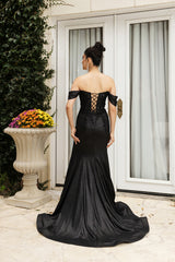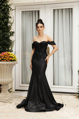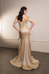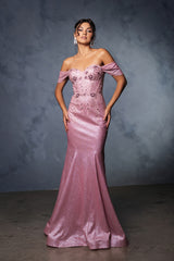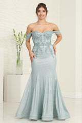 LA Merchandise LA2104 Off-Shoulder Embroidered Long Prom Gown