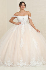 LA Merchandise LA253B Ivory/Nude Floral Bridal Ball Gown