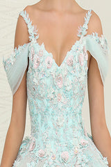LA Merchandise LA258 Mint Cold Shoulder Floral Quinceanera Ball Gown