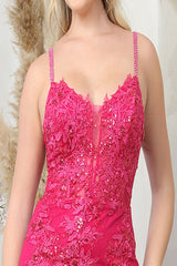 - Details: Soft Cup Padded, Fitted, Spaghetti Strap, Embellished Lace, Lace up Back, Low Cut-Out Back, Glitter, Sweep Train. (Please note: Slight natural fall out of glitter may occur 1st couple of try-ons).