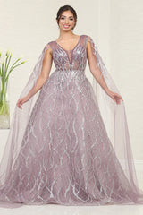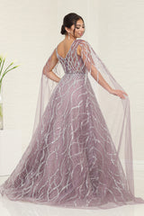 LA Merchandise LA8082 Sequin Mauve Shoulder Cape Prom Evening Gown