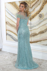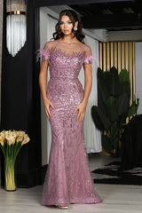 LA Merchandise LA8092 Feather Sleeve Sequin Dress Elegant Formal Dress
