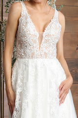 LA Merchandise LA8098 Ivory V-Neck Sleeveless Wedding Lace Gown