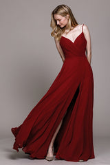 This simple popular chiffon bridesmaids dress is also great for prom or any red carpet special occasion.