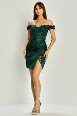 LA Merchandise LAL1084 Off-Shoulder Floral Corset Satin Mini Dress