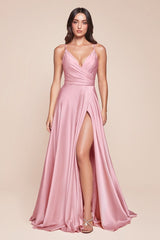 Embrace timeless elegance in the LA Merchandise LAR7485 Bridesmaids Evening Gown. Designed with a ruched bodice, empire waist, and daring slit, it exudes charm and sophistication. Adjustable spaghetti straps ensure a perfect fit, while the satin fabric and V-neckline make it ideal for bridesmaids, galas, pageants, and special evenings.