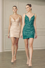 La Merchandise LAT870 Embroidered Sequin V-neck Short Homecoming Dress