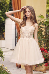 La Merchandise LAT883 Sheer Bodice Spaghetti Straps Cocktail Dress