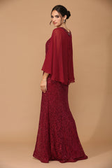LA Merchandise LAV3276 Cape Sequin Evening Lace Dress