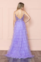 Details: Bustier, Spaghetti Strap, Tiered Ruffle Mesh, Beaded, Slit, Sweep Train, Open Back, Sequin Embroidered, Corset Sheer Top, Zipper Closure.