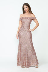 La Merchandise LN5224 Sequined Off Shoulder Prom Wholesale Formal Gown