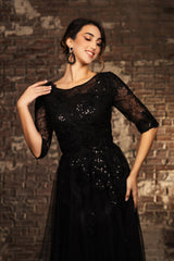Raise your occasion charm with the LA Merchandise LA2143 floral embroidered mesh dress. Sparkling with sequins, it features a boat neckline, 3/4 sleeves, and a flattering A-line silhouette. This dress is timeless for sophisticated occasions, Ideal for Mother of the Bride/Groom and Evening parties.