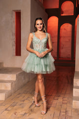 The LA Merchandise LA2116 is the ultimate homecoming cocktail dress, designed to capture attention with its exquisite details. A sheer corset bodice with intricate floral lace and 3D appliqués creates a dreamy, feminine look, while the layered tulle skirt adds a fun and flirty touch. Whether you're twirling on the dance floor or posing for pictures, this dress ensures you look effortlessly stunning.