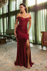 Design your collection with the LA Merchandise LA2148 Sheath gown crafted from luxurious Lycra. With a sweetheart neckline and off-shoulder style, it sparkles with sequin and glitter detailing. The ruched fitted bodice, high slit, and V-open back create a dramatic, sultry look, finished with a sweeping train. It is ideal for galas and red carpets.